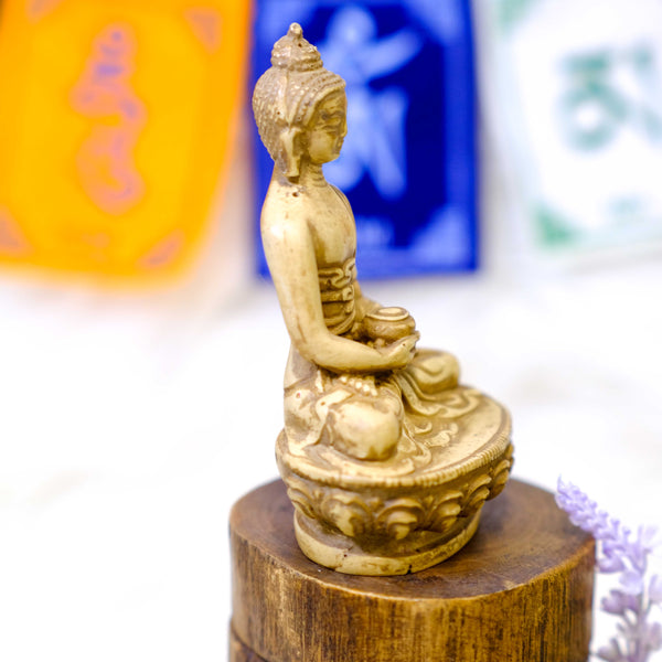 The body of this Buddha has been engraved along with Dragon symbol on the back which symbolizes protection. The bottom of the statue has been engraved with the Healing Mantra " OM MA NI PAD MI HU"