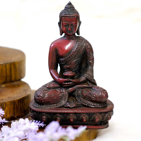 In this pose, the Buddha is depicted with both hands in the lap, face up, and the legs are crossed, either in a Double Lotus pose (with the ankles of each leg tucked behind one another in a locked position), or in a Single Lotus pose (where one leg rests on top of the other leg). Occasionally, an alms bowl is placed in the lap as well.