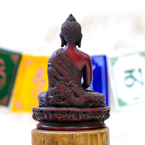 The body of this Buddha has been engraved along with Dragon symbol on the back which symbolizes protection. The bottom of the statue has been engraved with the Healing Mantra " OM MA NI PAD MI HU"