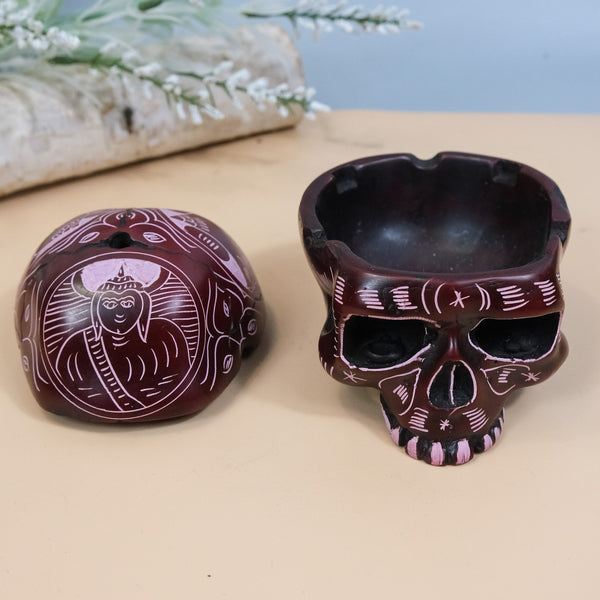 This beautiful hand made resin skull comes in two pieces and has the beautiful hand painting. You can use this to store your coins, jewelries, car keys etc. or simply use this as a decor item for your room or as ashtray too.
