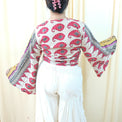 This Kantha Reversible Wrap Top is a one-of-a-kind piece of sustainable fashion, handcrafted from upcycled vintage fabric. With its versatile design, it can be worn in many ways, bringing a bohemian touch to any outfit. Perfect for any season, this top embodies a boho fairy style with a touch of uniqueness.