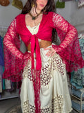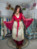 Experience bohemian goddess vibes with the Mossy Dreams Lace Top. This handmade lace blouse features ruffle sleeves and a flare design for a touch of whimsy. Versatile and inclusive, it can be worn in many ways - as a wrap top, tie top, or kimono - perfect for summer and any season. Elevate your festival fashion with its bohemian style and mossy dream vibes.