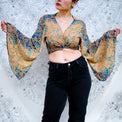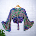 Elevate your wardrobe with our handmade Paisley Bohemian Style Wrap Top, perfect for any occasion. This boho crop top features a unique three-way bell sleeve design, adding a fun and free-spirited flow to your look.