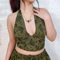 This handmade Witchy Boho Halter Top is the perfect choice for any bohemian fashion lover. Its celestial mushroom design adds a touch of witchy charm to the boho crop style. Made from stretchy and breathable cotton, this backless halter top is perfect for summer and will elevate your bohemian style to new heights.