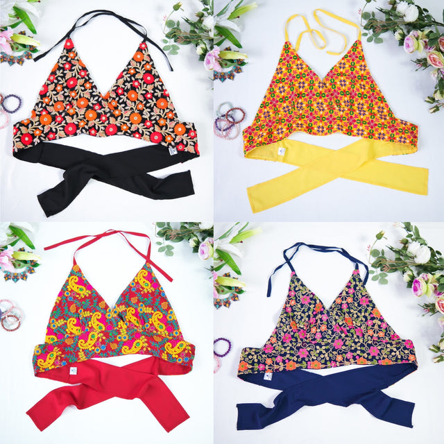 Patchwork Reversible Halter Backless Top