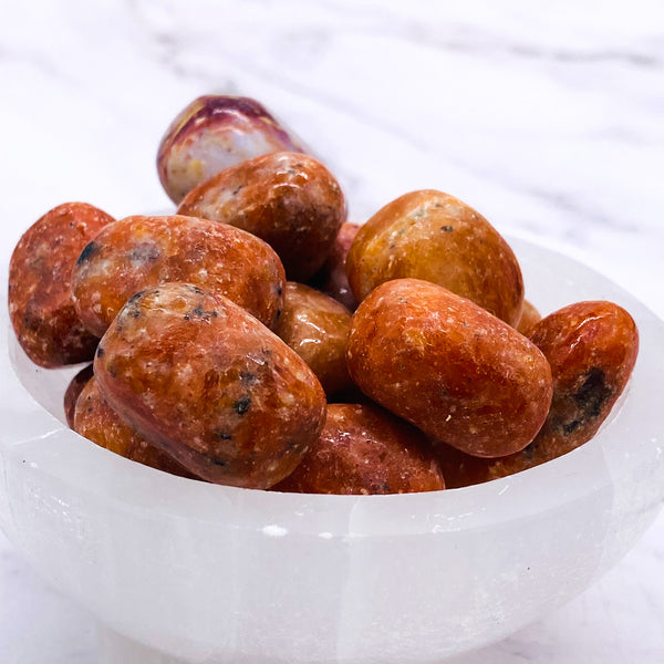 YOU WILL RECEIVE SELECTED ORANGE CALCITE TUMBLESTONE THST WEIGHS BETWEEN 20 TO 22 GM.