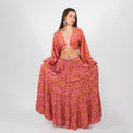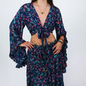 A dreamy two-piece set featuring a flowy tiered skirt and wrap top with ruffle sleeves. Designed with a whimsical paisley print inspired by hummingbirds, peacocks, and butterflies. Light, comfy, and wearable year-round, perfect for festivals, brunch, and everyday boho styling. Wear it as a full set for maximum impact or mix and match the pieces for endless outfit possibilities. It’s lightweight enough for summer festivals, layered enough for spring & fall transitions, and cozy with tights or boots for winter styling — truly a year-round muse