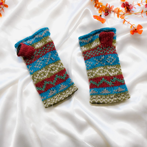 Keep your hands cozy while staying effortlessly boho-chic with our Stripey Multicolor Handwarmers. These hand-knit fingerless gloves are crafted with love from soft wool and lined with plush fleece for extra warmth and comfort. The vibrant mix of colors — from earthy greens and turquoise to playful pinks and yellows — adds a joyful pop to your winter wardrobe, bringing sunshine to even the coldest days.