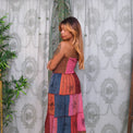 Embrace free-spirited fashion with our handmade Boho Patchwork Multi-Way Skirt Dress – a versatile piece you can wear as a maxi skirt or strapless dress. Perfect for bohemian festivals, summer getaways, or everyday style, this convertible cotton dress features vibrant patchwork panels with symbolic prints like sun, moon, butterflies, and tribal designs. The elastic smocked waistband offers a flattering fit for all body types and effortless wearability.