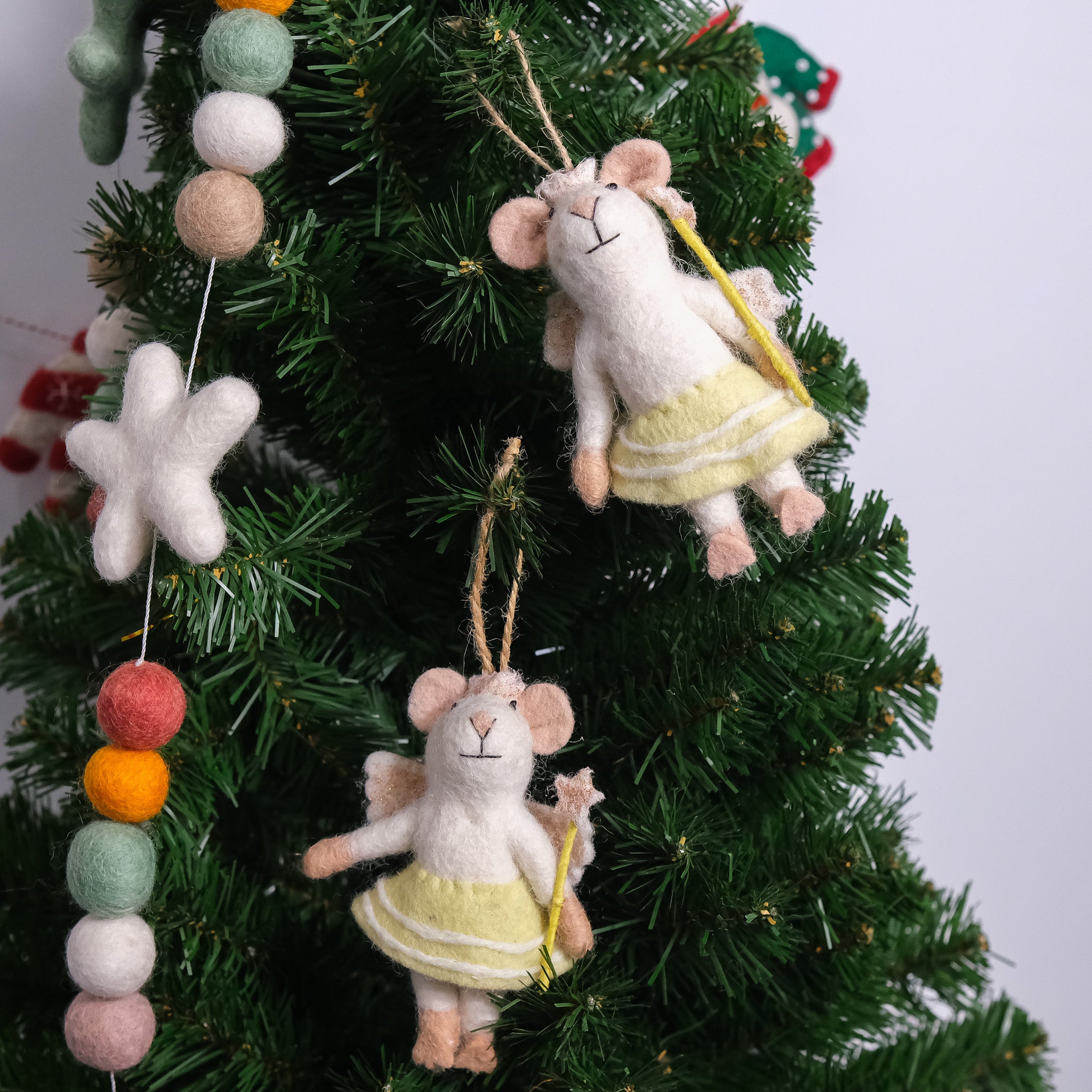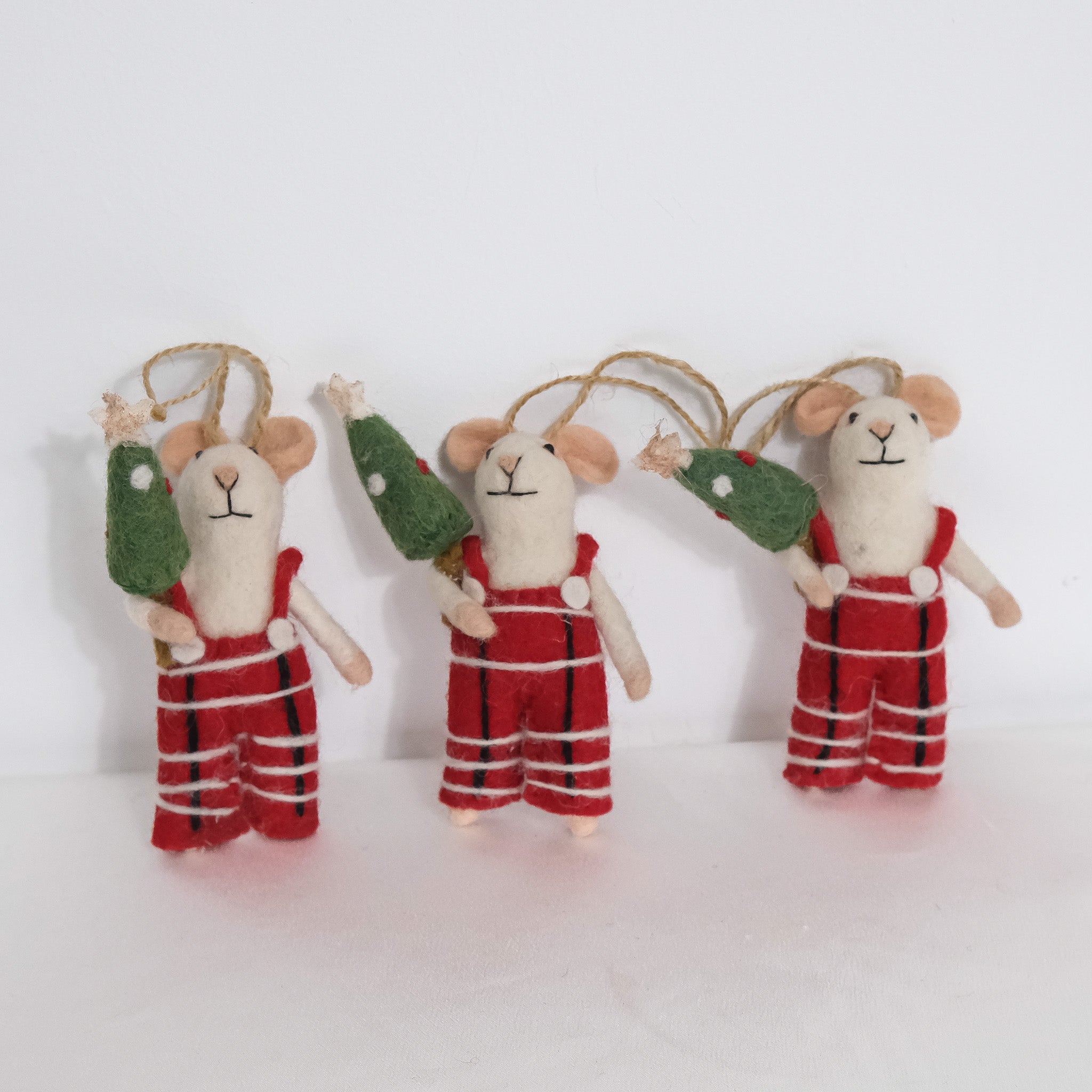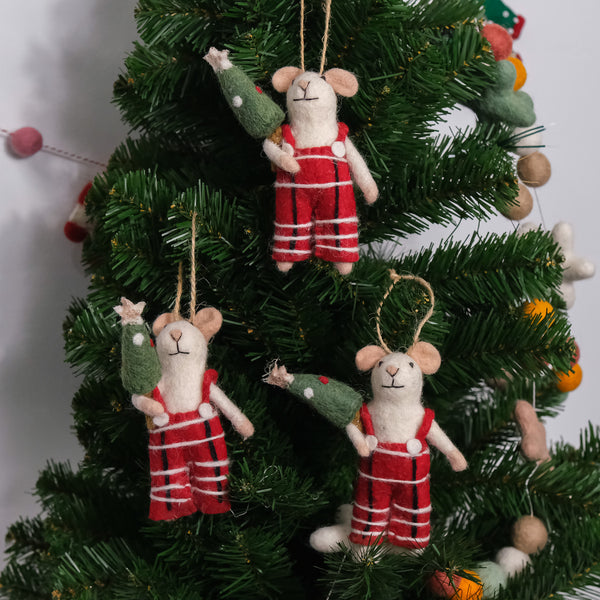 These cute felted mice make the perfect Christmas tree decorations, holiday gifts, or nursery accents. Their sweet little smiles and handcrafted details bring a whimsical, heartwarming touch to any festive space. Lightweight and easy to hang, they’re ideal for rustic, Scandinavian, or cottagecore-style holiday décor.