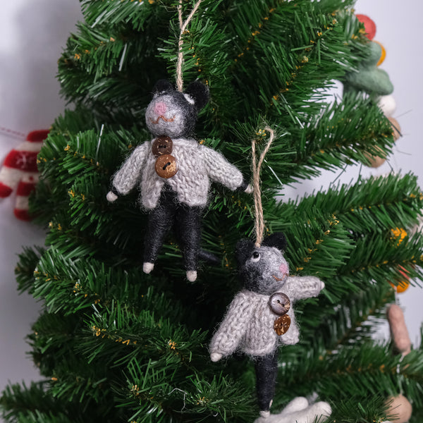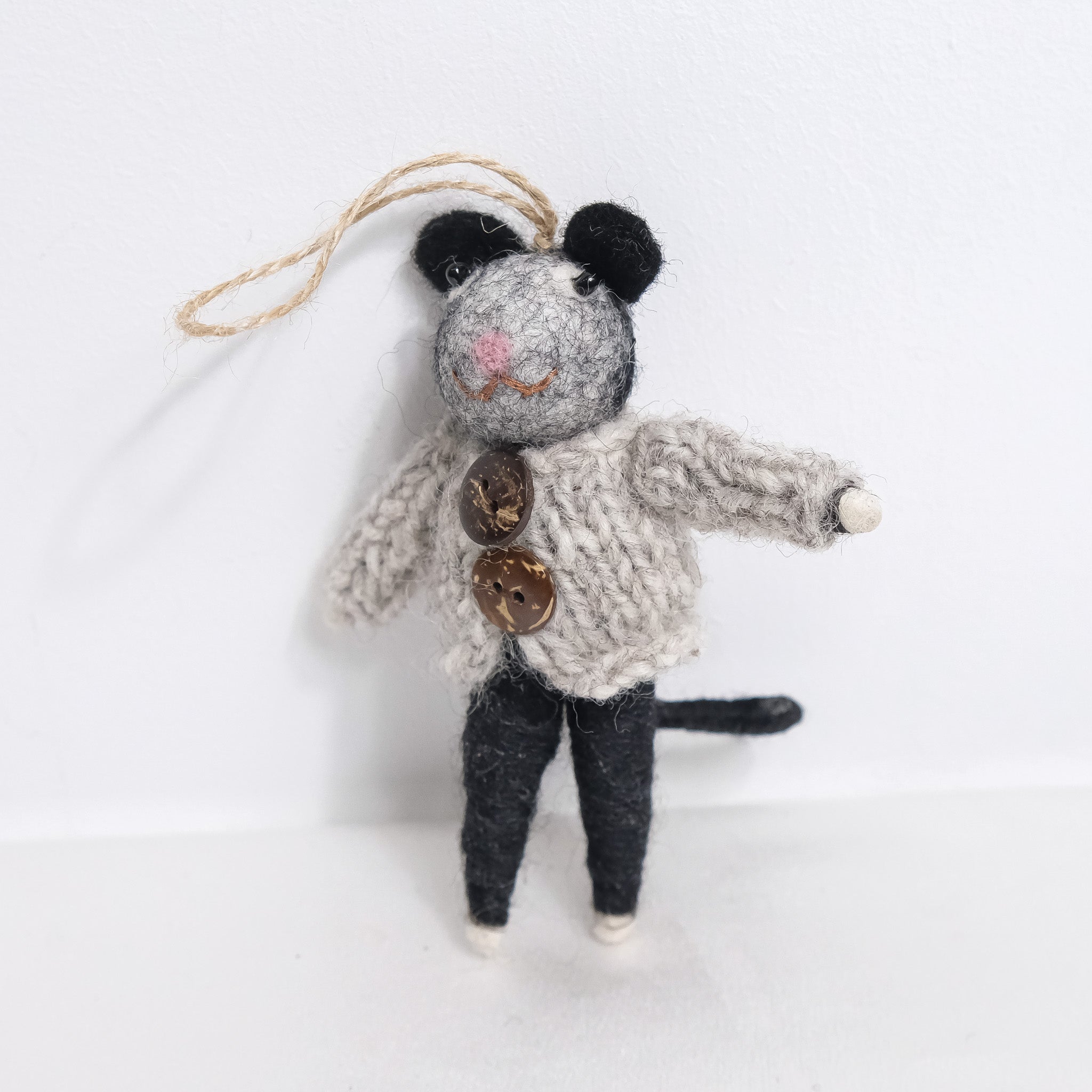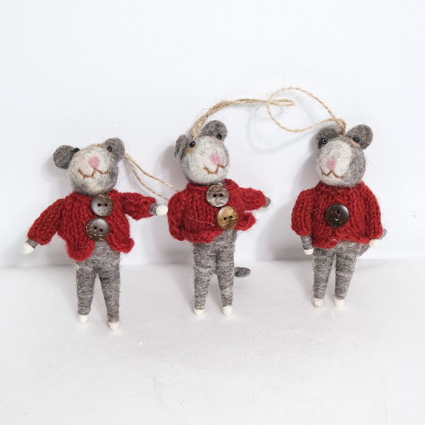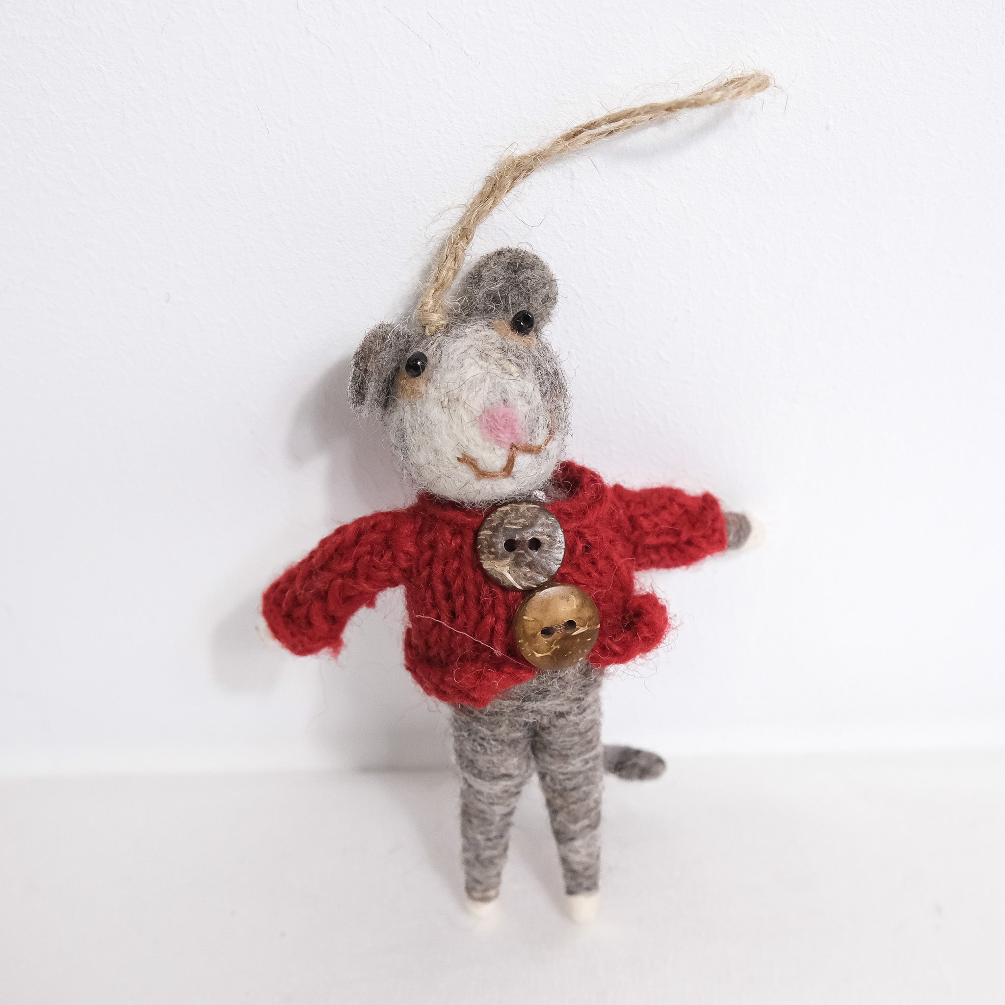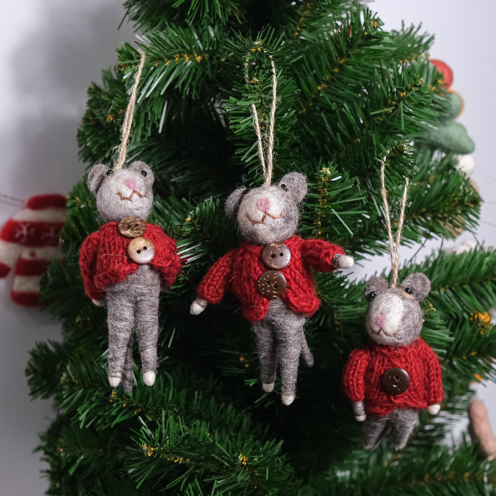 Add a touch of cozy woodland charm to your holiday season with these Handmade Felted Mouse Ornaments 🐭🎄! Each adorable mouse is carefully crafted using the needle felting technique, featuring a soft wool body and a tiny hand-knitted red sweater with a button accent — full of character and warmth.