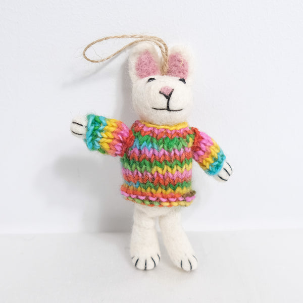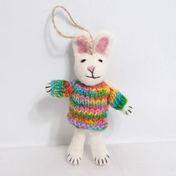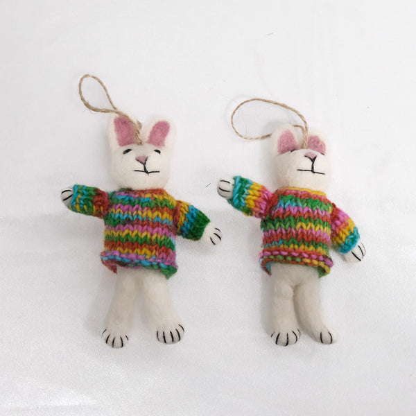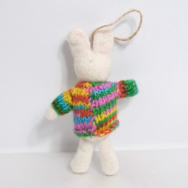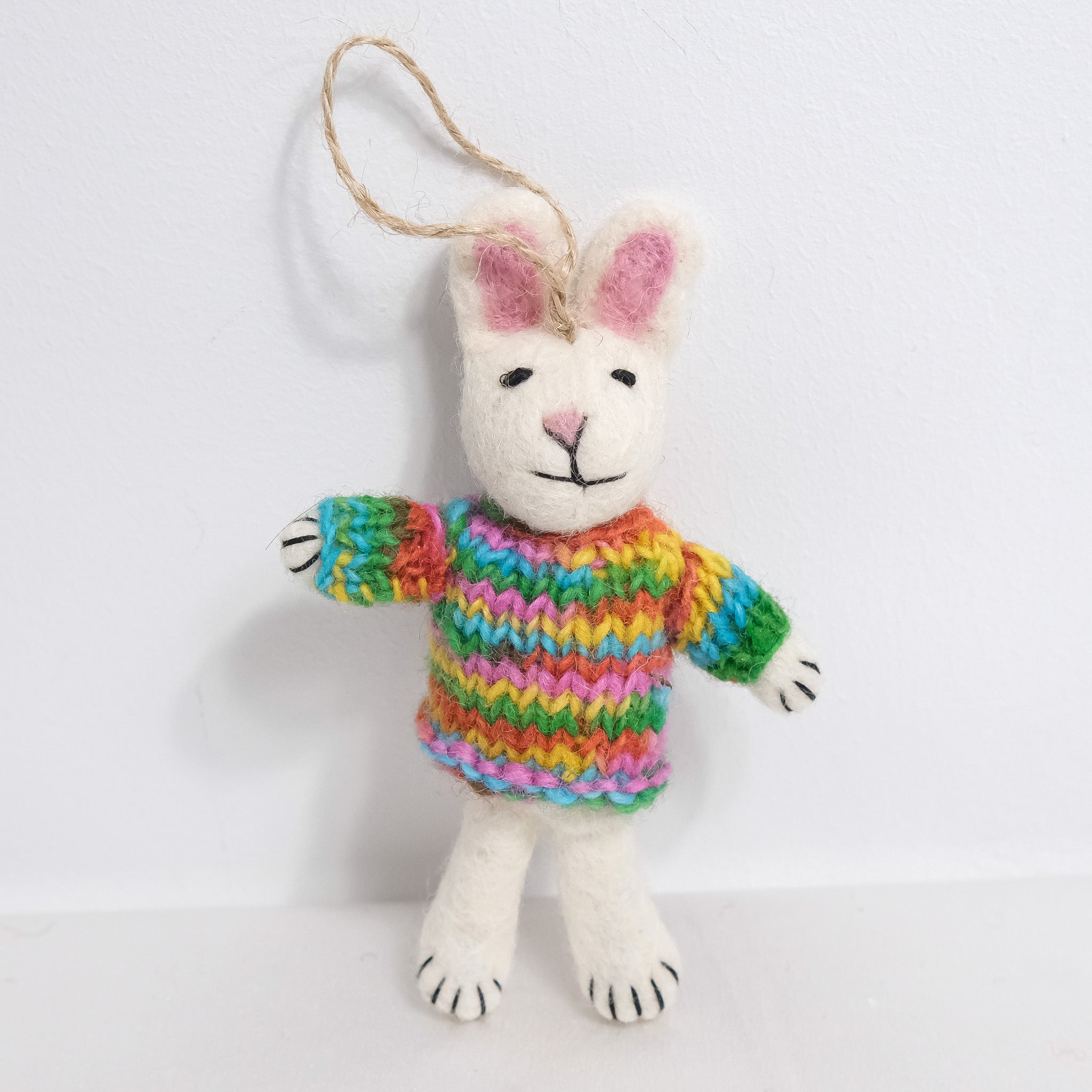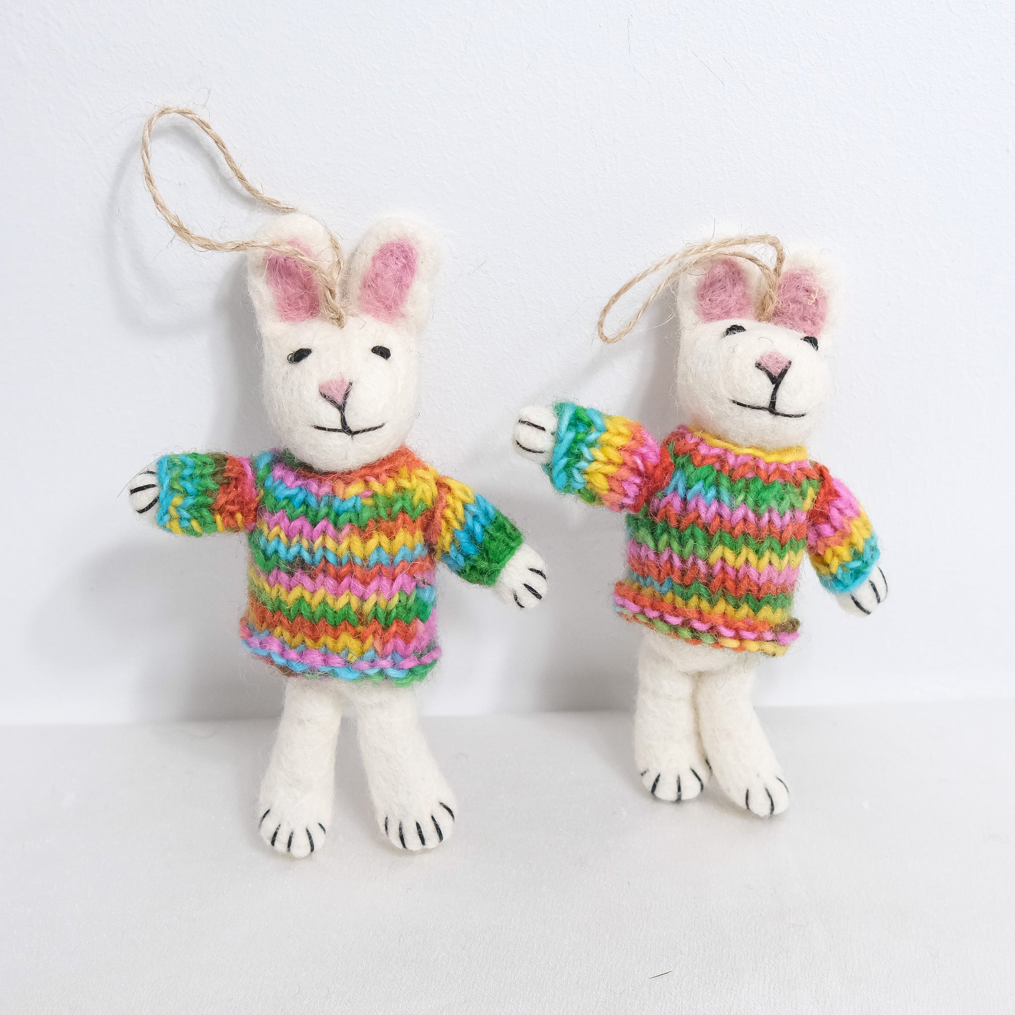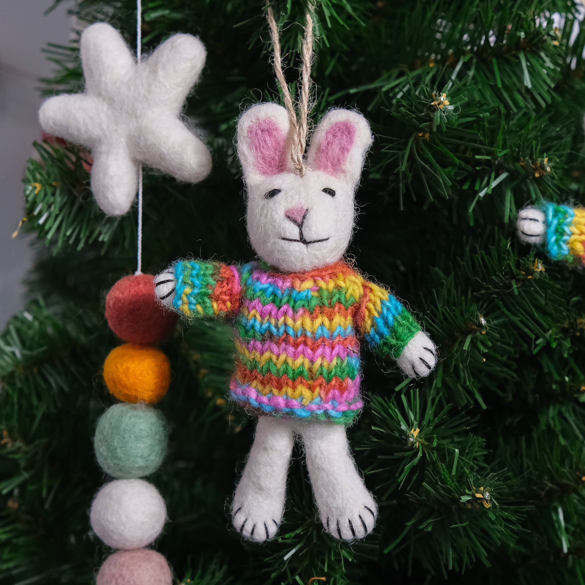 Bring a pop of color and cozy charm to your Christmas tree with these adorable needle felted bunny ornaments! Each bunny is lovingly handmade using soft wool and features a tiny, cheerful rainbow sweater—perfect for adding a whimsical, feel-good vibe to your holiday decor.
