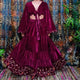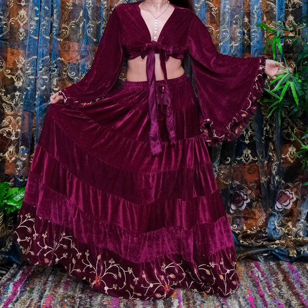 Flowy Velvet Embroidery Skirt with Ruffle Sleeve Top