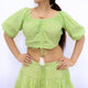 The top offers multiple styling options—wear it off-shoulder, as a regular top, or adjust the drawstring ruching at the center for a custom fit. Puffy sleeves add a romantic touch, making this set perfect for those who love boho and free-spirited fashion.
