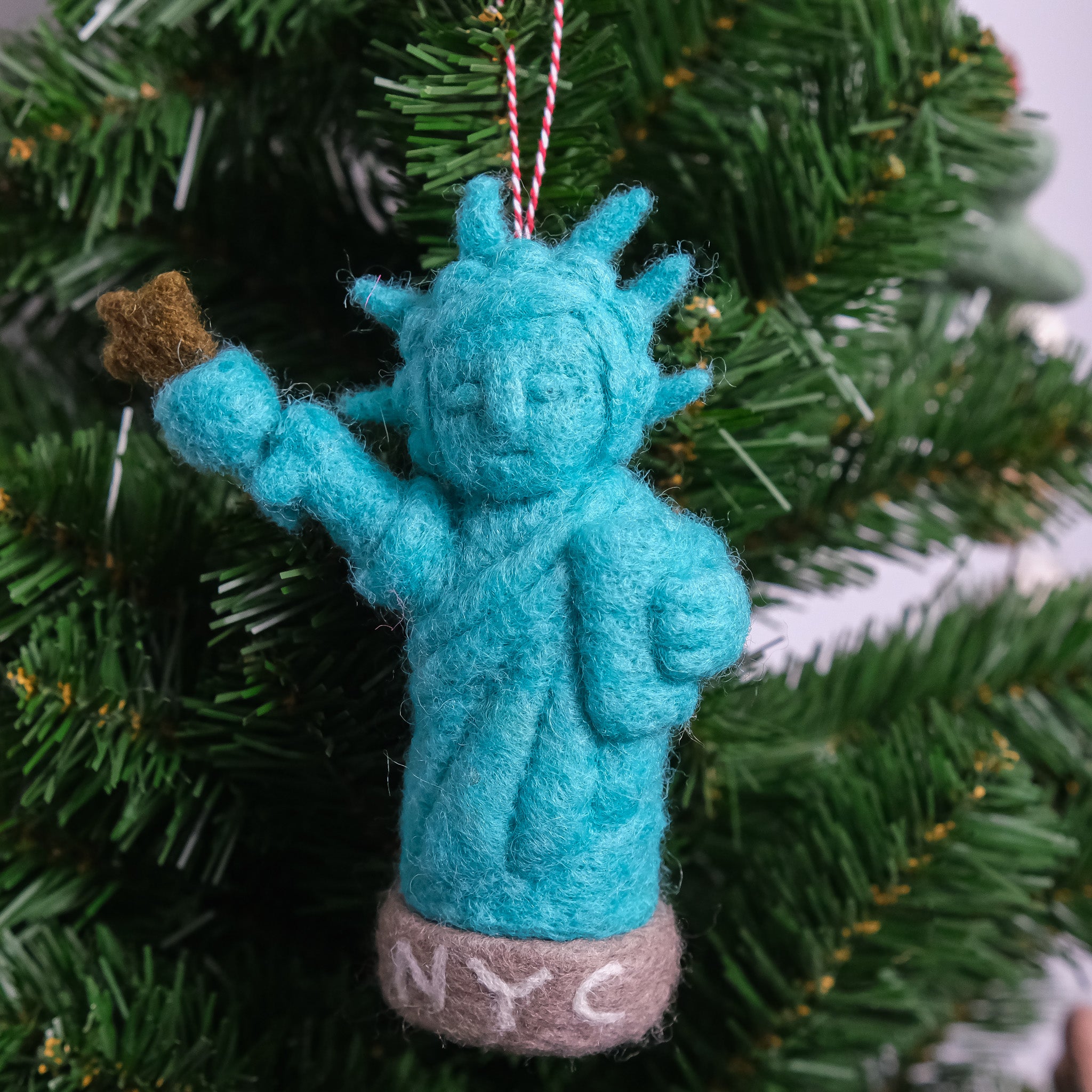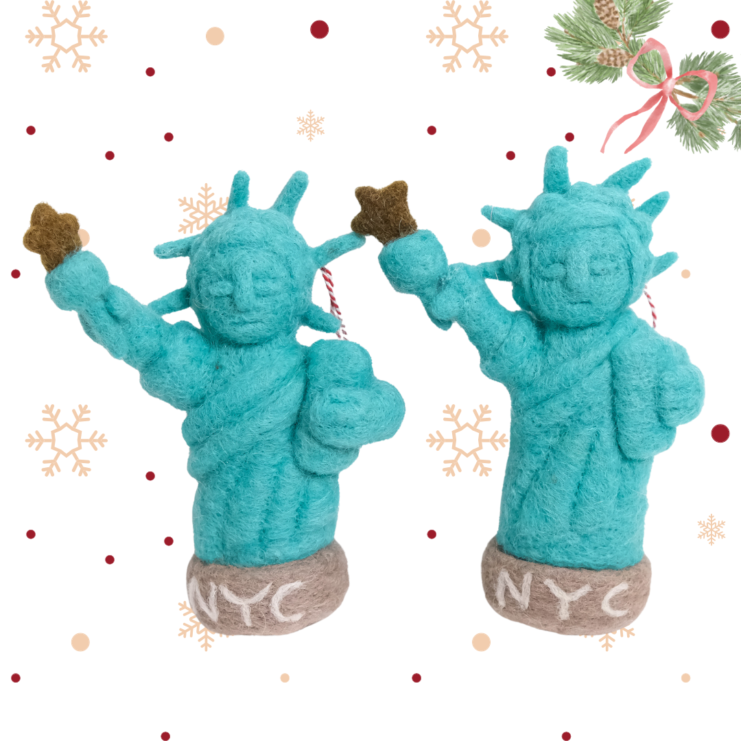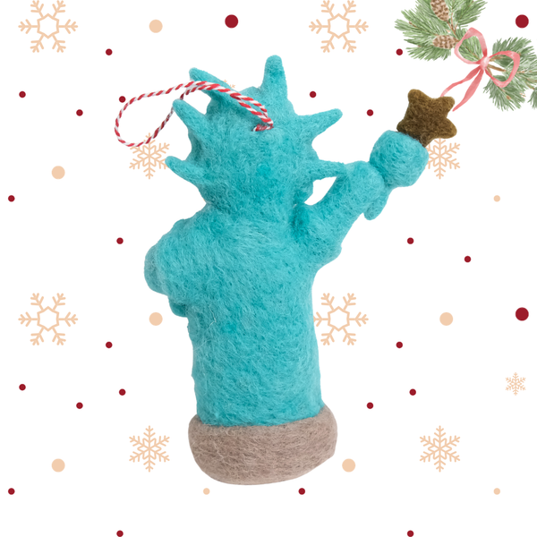 Celebrate the magic of New York City this holiday season with this Handmade Felt Statue of Liberty Ornament 🗽✨! Lovingly crafted using the needle felting technique, this adorable ornament captures the spirit of NYC in soft wool form — complete with the Statue’s iconic crown, torch, and a base labeled “NYC.”