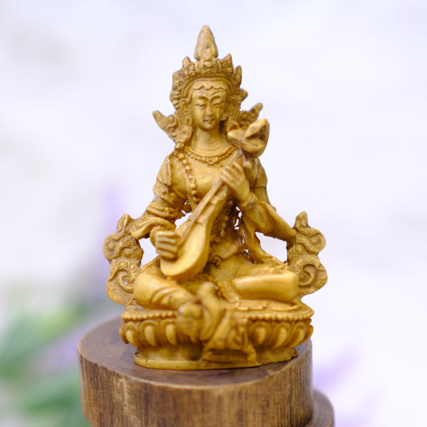 Saraswoti is the beloved Hindu goddess of knowledge, music and the arts. In Buddhism, she is a guardian deity who upholds the teachings of Gautama Buddha. She is a part of the trinity of Saraswati, Laxmi and Parvati. All three forms help the trinity of Brahma, Vishnu and Shiva in the creations, maintenance of the universe.