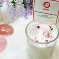 This soy candle is lovingly hand-puffed and scented with Rose Quartz and Lavender. It comes with a genuine Rose Quartz Crystal embedded in the container. Rose Quartz is believed to bring the power of love to its users, especially self-love. An ideal present for your beloved or to mark a special occasion.