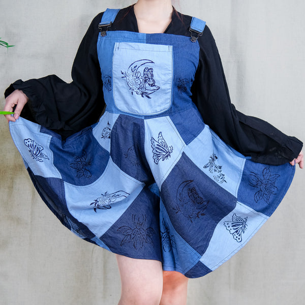 Elevate your summer wardrobe with this charming patchwork denim wide leg romper. Crafted from soft, breathable cotton, this romper is designed for comfort and style, making it a perfect choice for warm weather.