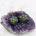 Tibetan Turquoise, Coral, Lapis Lazuli Round Earrings, Bohemian Jewelry, Ethnic Silver Earrings, Unique Women Accessories, Gift for Her