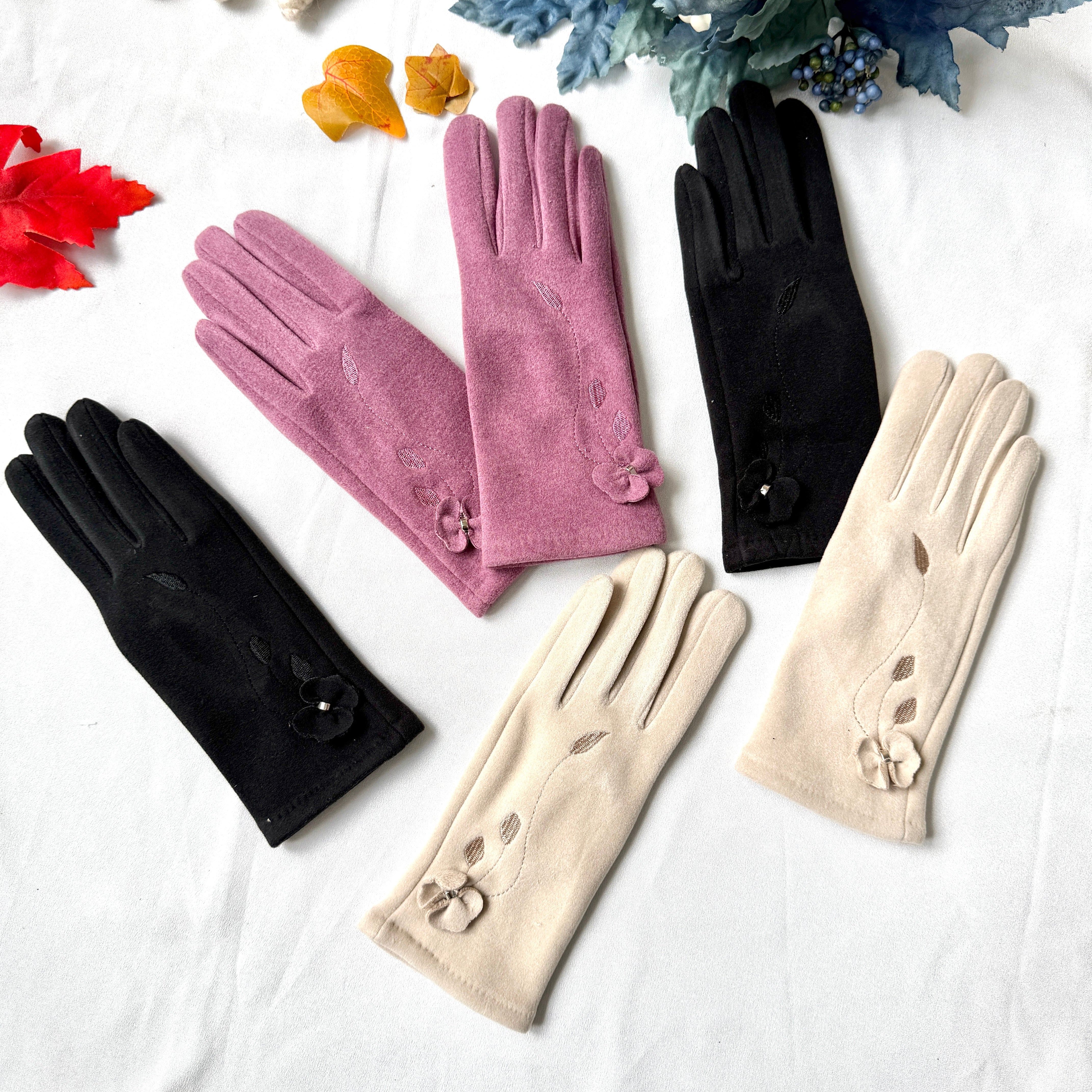 Available in chic seasonal shades—pink, black, beige, and purple—these gloves are a perfect match for both casual and dressy outfits. A subtle 3D flower detail and leaf embroidery add a feminine touch, making them ideal for daily wear or as a thoughtful gift for her.