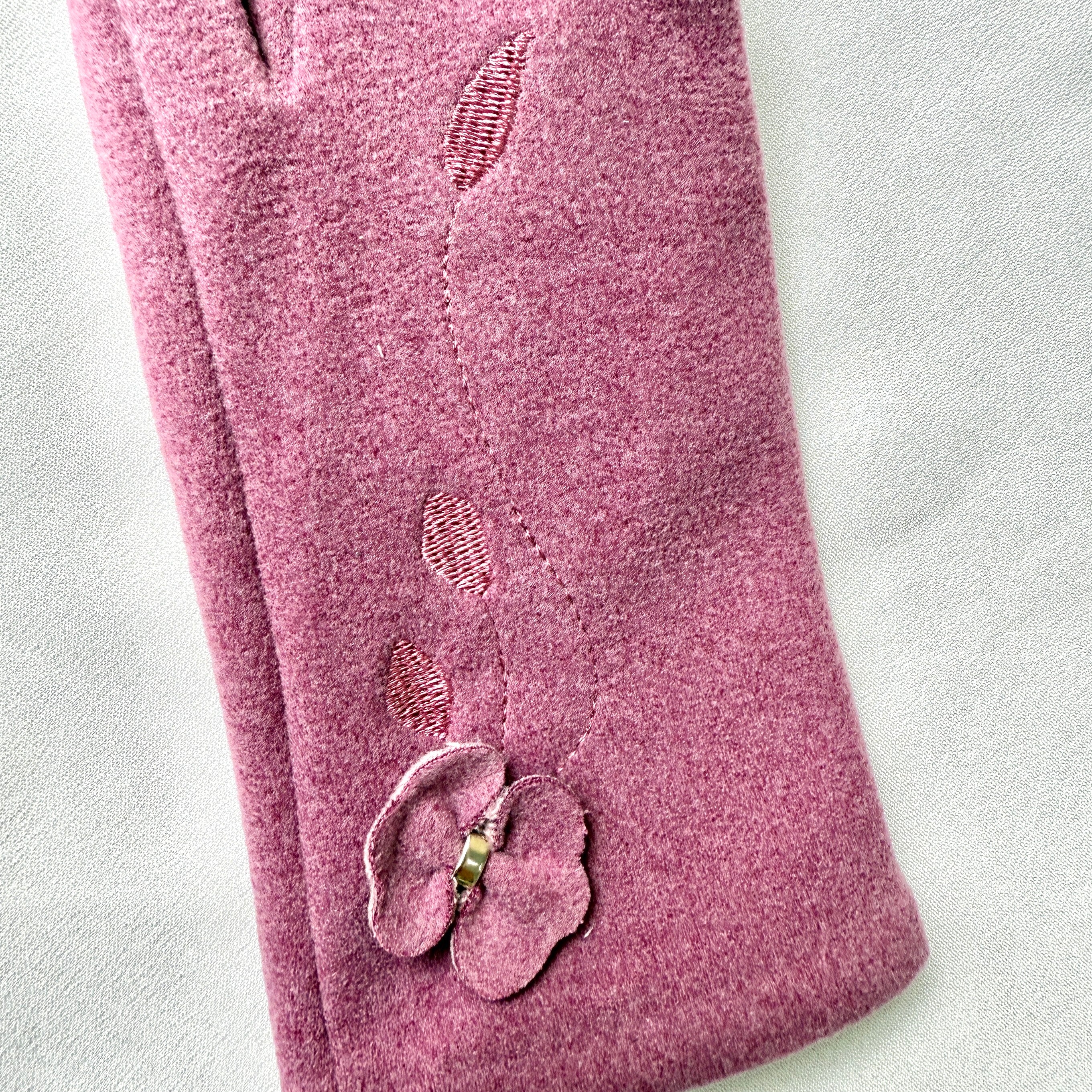 Stay cozy in style this winter with our elegant women's fleece gloves, featuring delicate floral embroidery and a soft, warm interior.